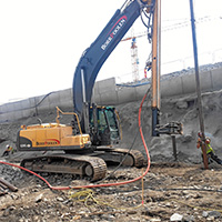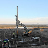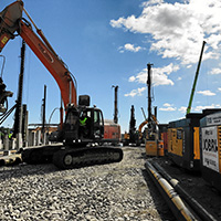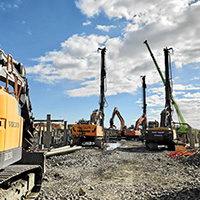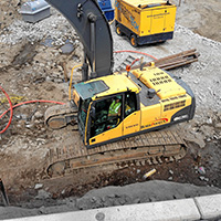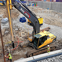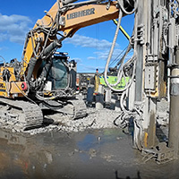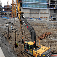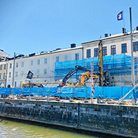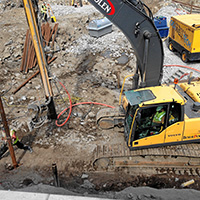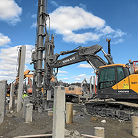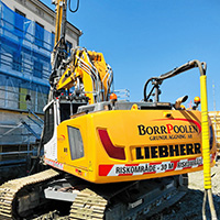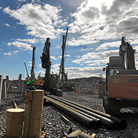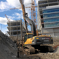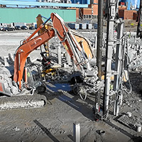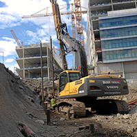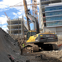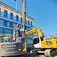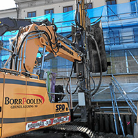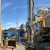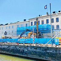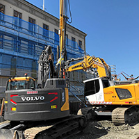 Vi sätter första pålen till Västlänken utanför det kungliga Residenset i Göteborg. Borrar för Aarsleff.
