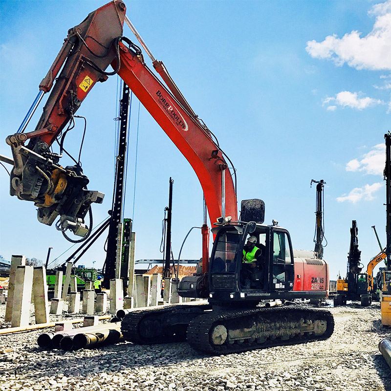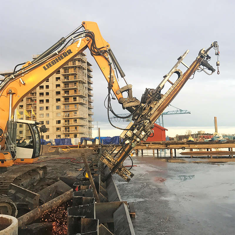 Vi har slagmaskiner upp till 12m med både 1.000-hammare och 2.000-hammare.